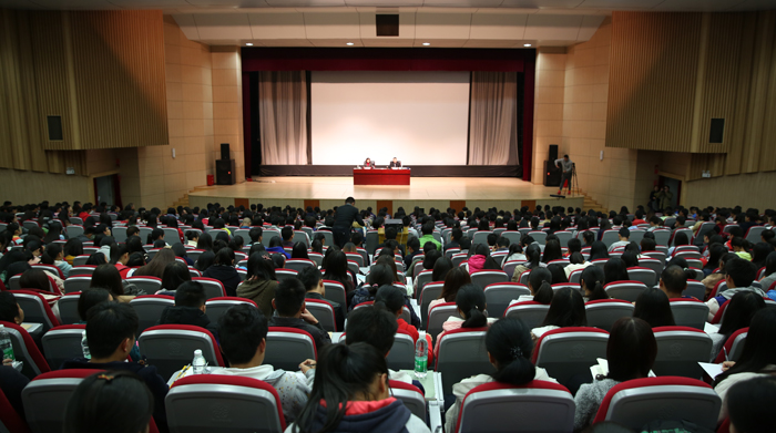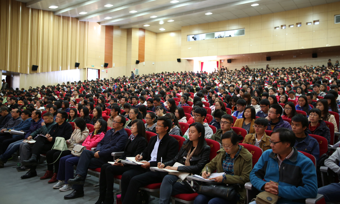 11月28日,新葡萄官网2015年新党员集中专题党课在学生会堂举行,党委书记陈世波为2000余名师生新党员、入党积极分子上专题党课,主讲党的十八届五中全会精神。