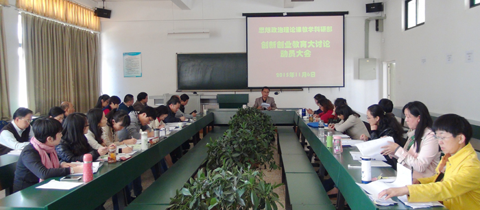 根据学校开展 “创新创业教育大讨论”统一部署和安排,思想政治理论课教学科研部于11月6日下午在博识楼2304召开了“创新创业教育大讨论”动员大会,会议由思政部主任王建华主持。