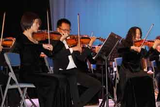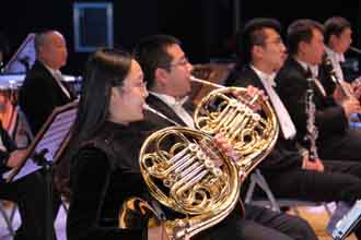 昆明聂耳交响乐团的艺术家们为新葡萄官网师生演奏了关峡的《节日序曲》、那少承的《滇池圆舞曲》、鲍元恺的《紫竹调》《猜调》、杜鸣心的芭蕾舞剧《红色娘子军》组曲之《军歌》《操练》《快乐的女战上》《万泉河水》、丁晓里的《中国心》、柴可夫斯基的芭蕾舞剧《天鹅湖》组曲之《场景》《四小天鹅》《拿波里舞曲》、奥芬•巴赫的《康康舞曲》、约翰•施特劳斯的《拨弦波尔卡》《铁匠波尔卡》《拉德斯基进行曲》。