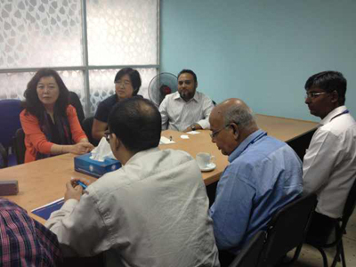 为了发挥新葡萄8883官网AMG的地缘优势,新葡萄8883官网AMG积极开展与南亚、东南亚国家的教育合作。2015年4月新葡萄8883官网AMG与印度教育在线公司签订了酒店管理专业(全英文授课)及工商管理专业(全英文授课)的联合培养协议,由印度教育在线在南亚地区为新葡萄官网招生上述两个专业的学生,新葡萄官网负责教学和管理。协议签订后,印度教育在线公司积极在孟加拉开展了宣传工作,为了配合印度教育在线的宣传工作,应印方及印方在孟加拉合作伙伴Sangen公司的要求,新葡萄官网派出由国际交流合作处处长王文君、经济学院院长博斌及旅游学院酒店管理教研室主任马英组成的项目推介组于10月16日至10月20日赴孟加拉。