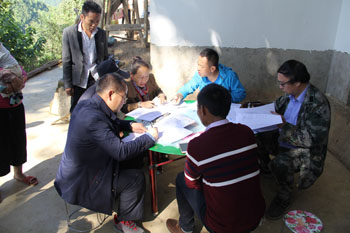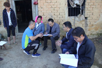 26日清晨,郭华带领“挂包帮”干部在崎岖的山路上步行一个多小时,来到所联系的腊哈行政村贾玛自然村。在详细了解贾玛村的情况后,大家直奔主题,深入到所联系的贫困村和贫困户家中,通过“一看、二听、三问”开展调查和遍访工作,并认真填写了《云南省贫困村访谈问卷》、《云南省贫困户访谈问卷》、《云南省脱贫攻坚“挂帮包、转走访”结对帮扶联系卡》和《红河县垤玛乡精准扶贫转走访工作入户调查表》。在入户调查中,郭华要求挂钩遍访干部确实做到“五落实五确保”:一是落实贫困村贫困户信息的核对,确保信息准确真实;二是落实贫困村贫困户的基本情况的了解,确保对帮扶对象的家底心中有数;三是落实导致贫困的原因和实际需要的分析,确保调查研判精准、符合实际;四是落实建档立卡资料和精准扶贫信息的动态管理,确保资料信息可靠、可用和及时更新;五是落实与帮扶农户的长期挂钩联系,确保扶贫工作“不脱贫,不脱钩”。
