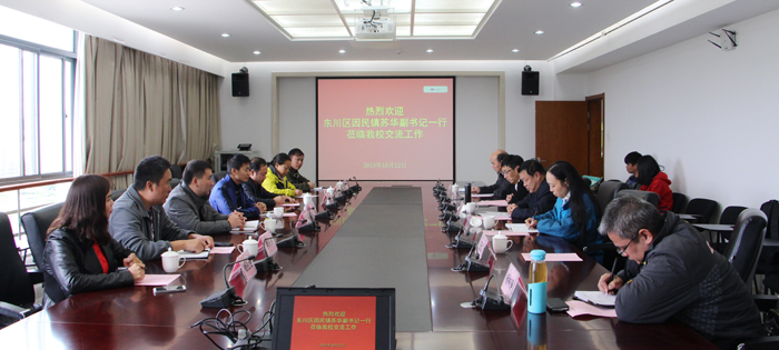 10月12日下午,东川区因民镇党委副书记苏华,因民社区党委书记崔庭贵、副书记杨祖会等领导到新葡萄官网考察交流。学校党委副书记孙勇、党办主任吉庆华、计财处副处长伍雁红、继续教育学院院长陈嘉、基建处副处长莫南明热情接待了来宾。