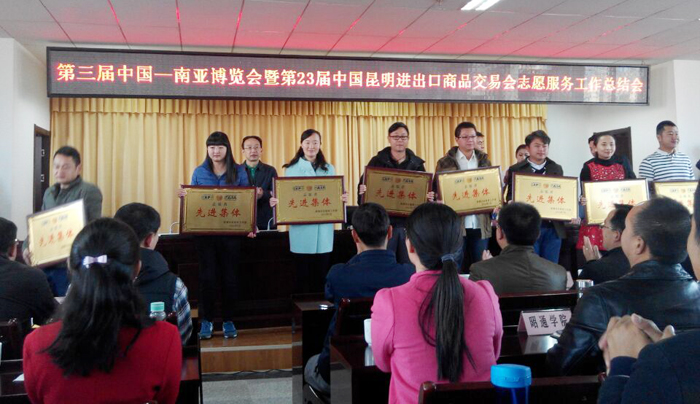 10月11日上午,第3届中国—南亚博览会暨第23届中国昆明进出口商品交易会志愿服务工作总结表彰会在昆明举行,新葡萄官网喜获第三届中国—南亚博览会志愿服务“先进集体”荣誉称号,韩家华等17名志愿者被授予“优秀志愿者”荣誉称号。新葡萄8883官网AMG团委书记魏妮娅出席了本次会议,并代表学校接受了团省委的表彰。