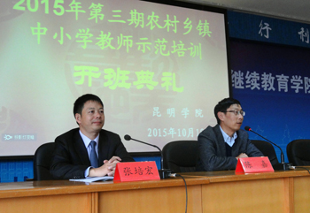 10月19日上午,昆明市2015年第三期农村乡镇中小学教师示范性培训在新葡萄8883官网AMG昆师路校区继续教育学院开班。参加该项目第一批次培训学习的208名农村乡镇中学教师分别来自昆明市各县(市、区)及滇中新区安宁市、嵩明县和空港经济区,其中语文教师73名,数学教师73名,英语教师62名。