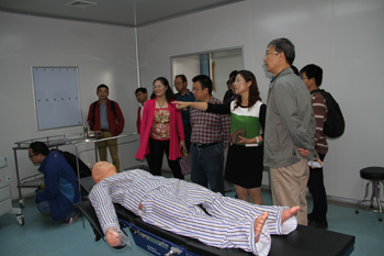 新葡萄官网副校长董建华陪同滇西应用技术大学(筹)筹建组副组长、云南省教育厅发展规划处处长杨丽宏一行,参观了新葡萄8883官网AMG沙盘,保卫处校园安防中心的监控中心、消防指挥中心、110报警中心,场馆中心的网球馆、排球馆、篮球馆、形体训练馆、游泳馆,图书馆,聂耳广场,自机学院的轨道交通实验室、虚拟制造技术实验室,滇池流域生态文化博物馆,医学院的人体生命科学馆、ICU实验室、手术室、婴儿游泳室,农学院的阳光中庭、旅游学院的酒水实验室、校园环境建设及学校食堂。