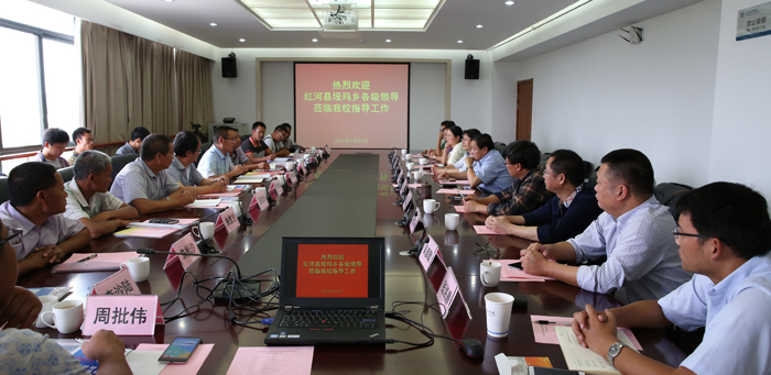 7月21日至22日,新葡萄官网2015年新农村建设指导员派驻站红河县垤玛乡乡长周绕斌、副乡长朱王法率乡属相关部门,指导员派驻点垤玛村、曼培村、腊哈村村委会党政负责人和新农村建设指导员等一行19人到新葡萄官网考察座谈。新葡萄官网党委副书记孙勇会见来宾,党委组织部、校长办公室和新农村建设指导员派出单位人文学院、旅游学院、外国语学院党政负责人等参加座谈。