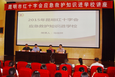 冯浩首先在讲话中指出这是昆明市红十字会应急救护知识巡讲活动在云南省的第11场巡讲,也是唯一一场安排在云南省内高校的讲座;介绍了昆明市红十字会开展此次应急救护知识巡讲的重要性和必要性。