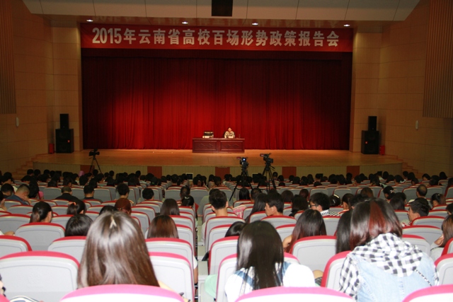 6月19日下午,学校2015年云南省高校百场形势政策报告会在学生会堂举行。中共云南省委党校、云南行政学院党委委员、公共管理教研部主任欧黎明教授应邀为新葡萄官网师生作题为“全面从严治党与高校党的建设”的专题报告。学校党委副书记孙勇、副校长李翔、中层干部、学校思想政治教育宣讲团成员、各党总支(直属党支部)师生党员代表共1300多人参加报告会。