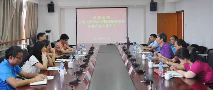 新葡萄官网副校长董建华及资产与实验室管理处、后勤集团、场馆管理服务中心等部门负责人热情接待了云南师范大学考察交流人员一行,并在办公楼311会议室召开了座谈会。
