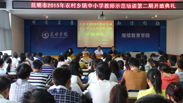 昆明市2015年农村乡镇中小学教师第二期示范培训,是昆明市教育局为贯彻落实《昆明市中小学教师素质提升三年行动计划(2015—2017年)》精神而开展的系列培训项目之一,其主要培训对象为各县区所辖乡镇以下完小、村小工作2年及以上的教学一线优秀骨干教师(含特岗教师)。通过积极争取,新葡萄8883官网AMG2015年获得小学语文、小学数学、小学英语、小学科学、初中语文、初中数学等6个学科共计600人的培训任务。