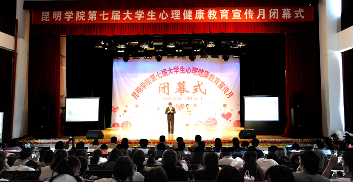 闭幕式共四项议程:第七届大学生心理健康教育宣传月(以下简称宣传月)系列活动回顾;学校领导致辞;心理剧展演;颁奖典礼。