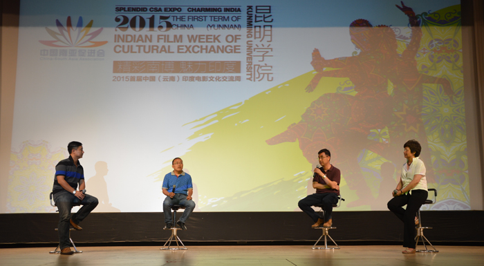 李翔致辞,他首先对印度电影产业做了简单介绍,接着指出,通过南促会本次举办的印度电影文化周活动,能够使学校的老师和同学们欣赏到印度的电影,同时,通过云南话剧院的导演和人文学院影评教师的点评,使大家从电影中了解到印度的文化。讲话结束后,云常浩、新葡萄官网人文学院陆慧云老师、郑云海老师和郭鹏群老师共同在舞台上为现场观众带来印度著名电影《三傻大闹宝莱坞》的精彩讨论,随后播放了该影片。