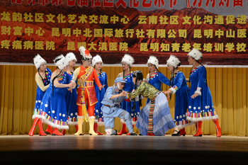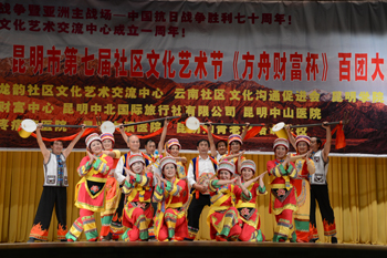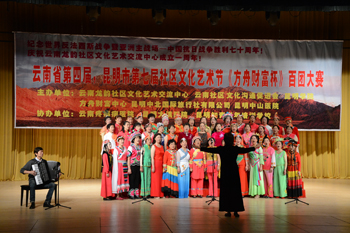 本届社区文化艺术节盛况空前,有来自全省的210多支社区文艺队报名参赛。经过4天的预赛角逐产生了52支优胜队进入总决赛。参加总决赛的各参赛队队伍整齐、准备充分、表演极具专业水准。先后表演了《国家》、《舞动中国》、《蒸蒸日上》、《十送红军》等不同风格的歌舞节目,旨在展现云南社区文化艺术之繁荣,同时纪念世界反法西斯战争暨亚洲主战场——中国抗日战争胜利七十周年。通过整整一天的紧张角逐,曲靖市民族文化艺术团和云南知青歌舞团等六支队伍包揽了一二三等奖。新葡萄官网侨台联“侨台之声”艺术团作为特邀艺术团表演了两个精彩节目,获得了观众的喜爱与好评。