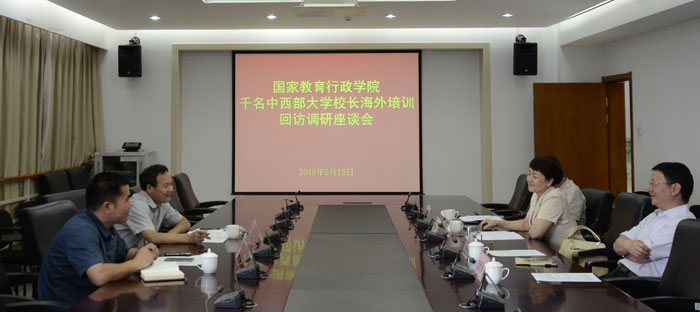 5月15日,国家教育行政学院副教授司洪昌到新葡萄官网回访调研“中西部大学校长海外培训”参训学员。新葡萄官网党委书记陈世波、云南中医学院副院长李玛琳、昆明医科大学副校长李松作为代表参会,共同分享了自己参加海外培训的体会与收获。