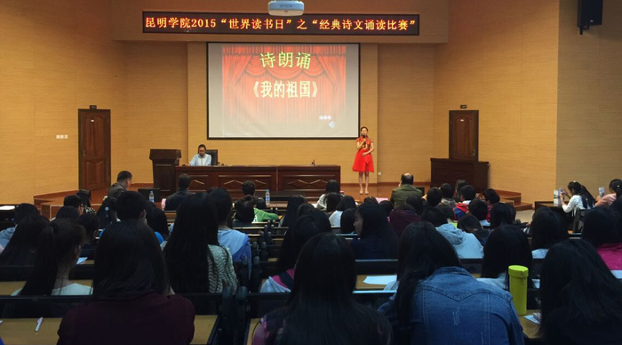 4月29日晚,由新葡萄官网学生处、图书馆、正心书院共同举办的2015世界读书日系列活动之“经典诗文诵读比赛”在图书馆报告厅隆重举行。学校科研处处长王定康、教务处副处长王韬、校团委副书记魏妮娅以及学生处王子龙和图书馆张明霞担任比赛评委,人文学院副院长吴彦勤作比赛点评。来自学校18个院系的近220余名学生代表观看了比赛。