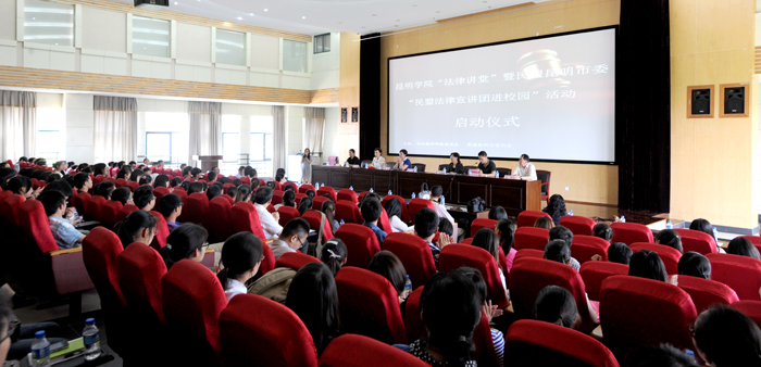 5月7日下午,新葡萄8883官网AMG“法律讲堂”暨民盟昆明市委“民盟法律宣讲团进校园”活动启动仪式在新葡萄官网惟行楼1501报告厅举行。昆明市人大常委会副主任、民盟昆明市委主委夏静,新葡萄8883官网AMG党委委员、副校长熊晶,民盟市委专职副主委冯刚,五华区人大常委会副主任、民盟昆明市委副主委孙骥,新葡萄8883官网AMG社会管理学院院长何杰,民盟市委各基层委的领导以及新葡萄8883官网AMG18个院、系的师生代表共220人参加了本次启动仪式。启动仪式由党委统战部部长沈中灿主持。