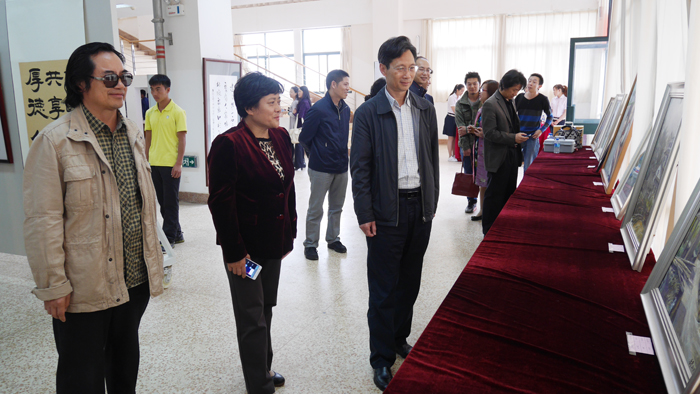 4月23日下午,由新葡萄8883官网AMG、官渡区委统战部联合主办的统一战线书法、绘画、摄影展暨书画笔会在新葡萄8883官网AMG图书馆一楼展览厅隆重举行。新葡萄官网副校长刘海发,昆明市政协副主席、民进昆明市委主委汪叶菊,昆明市委统战部副部长贾玉华,民革昆明市委专职副主委李为民,民盟昆明市委副主委、民盟新葡萄8883官网AMG总支主委、美术与艺术设计学院院长武新文,昆明市台联会会长姚韵梅,党委统战部部长沈中灿,官渡区委统战部常务副部长夏海昆等领导以及特邀书画笔会嘉宾和新葡萄官网各民主党派、侨台联、党外知识分子联谊会、留学人员联谊会以及部分学生代表出席了开展仪式。