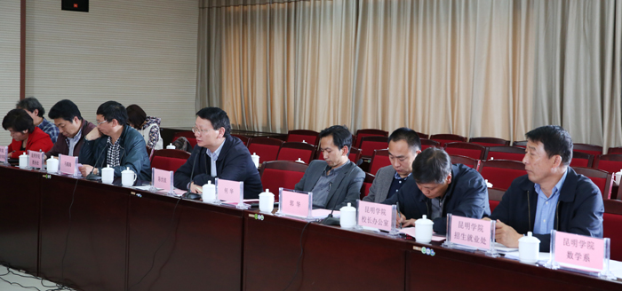 学校党委书记陈世波、校长何华、副校长郭华,昆明市教育局副局长鲁再国、昆明市招生考试院院长张文伟、昆明市编制办事业处副处长王川、昆明市财政局教科文处处长丁然、昆明市人社局副局长杨雄等部门领导参加座谈会,参加座谈的还有昆明市二、三板块的县(区)教育局领导和新葡萄8883官网AMG相关部门负责人。会议由校长助理马银海主持。