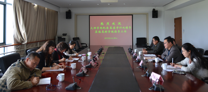 4月28日下午,大理学院纪委副书记、监察审计处处长董卫华,副处长胡国栋等一行4人到新葡萄官网就党风廉政建设工作进行考察交流。新葡萄官网纪委副书记、监审处处长陈开祥及监审处全体人员热情接待并与来访人员进行了深入座谈。