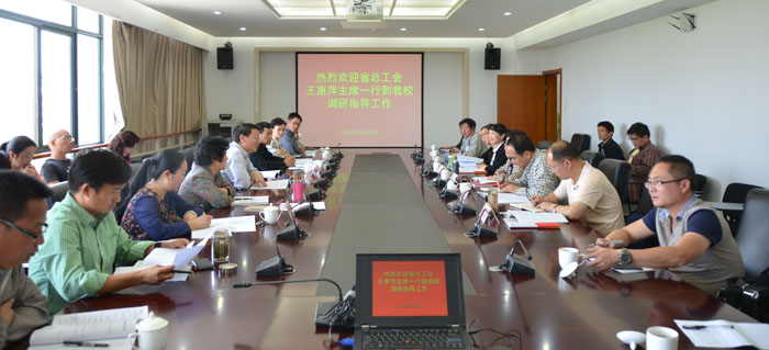 会议由昆明市总工会副主席刘辉主持。云南省总工会办公室主任金勇介绍本次调研工作的主要内容。学校党委书记陈世波代表新葡萄8883官网AMG对省市工会领导到校指导工作表示热烈欢迎,对省市工会长期对新葡萄8883官网AMG的关心支持帮助表示感谢,陈书记向调研组介绍了新葡萄8883官网AMG的基本情况和学校实质性合并后6年多所取得的成绩,高度肯定了工会积极发挥职能在学校追赶、跨越发展中所做的贡献。何华校长也对工会工作给予了肯定,他说,通过一个多月院系的调研,感觉到院系气氛融洽,团队状态很好。新葡萄8883官网AMG由多所学校整合,在较短时间内,广大教职工建立了对学校的归属感认同感,工会通过形式多样的活动加强职工的交流,在增进职工相互了解方面,发挥了积极的作用,在此也对省市工会对学校工会的关心支持表示感谢。