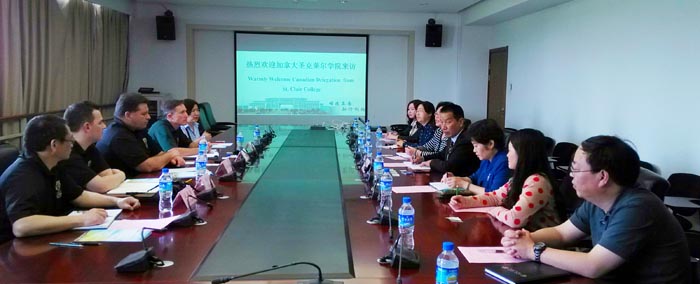 4月16日下午,加拿大圣克莱尔学院副校长Ron Seguin先生一行访问新葡萄官网,随行的有国际部主任Peter Bondy、注册官 Mike Silvaggi、国际部招生及项目发展经理巫春涛、圣克莱尔学院中国校代荣燕女士。新葡萄官网副校长李翔、熊晶率国际交流合作处、外国语学院、旅游学院、农学院和教师教育学院相关领导热情接待并与之会谈。