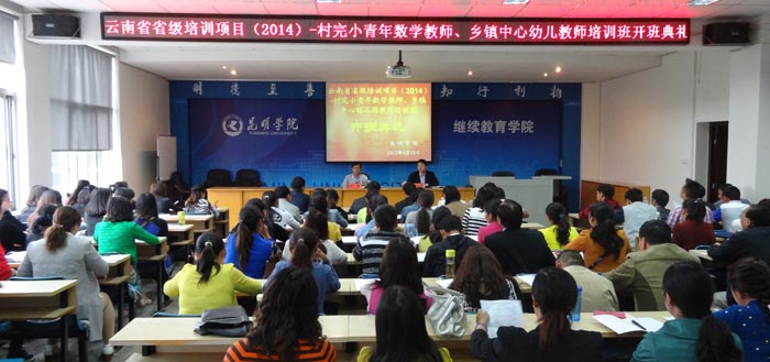 4月20日上午,云南省村完小青年教师(小学数学)、乡镇中心幼儿园教师培训开班仪式在新葡萄官网昆师路校区继续教育学院举行。这是新葡萄官网承担的中小学幼儿园教师省级培训2014年度项目的最后两项。来自昆明、楚雄、迪庆3个州市及滇中产业新区的50名小学数学教师和50名幼儿园教师,将在新葡萄官网参加为期10天的培训活动。