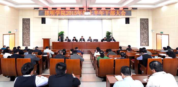 何华围绕2014年工作总结和2015年工作安排作了《抢抓转型发展机遇,深化学校内涵建设和转型发展》的讲话。首先,对2014工作进行回顾总结:一、强化党委领导核心作用,全面推进新常态下党的建设各项工作,为学校科学发展提供坚强保证;二、积极争取获批云南省高校应用型转型整体试点学校;三、立足应用型人才培养,积极推进教学改革;四、加强学科、团队和科研平台的培养,提升科学研究质量和服务社会能力;五、顺利完成岗位设置与聘任,进一步加强师资队伍建设;六、以学风建设为核心,学生管理工作取得新成效;七、积极开展国际交流合作;八、优化资源配置,提升管理服务部门质量与效能,加快校园基础建设。