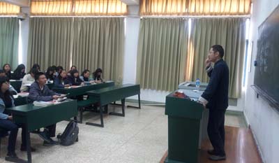 26日,徐晋如博士为人文学院中国文学教研室教师及2014级汉语言文学3班学生以《说杜甫》为题讲授两节公开课,为杜甫的“沉郁顿挫”注入新解。讲课过程中,徐晋如博士以六百年前明代国子监官音吟诵长诗《兵车行》,令课堂师生叹为观止。