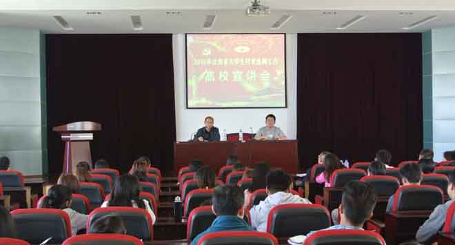 为扎实做好新葡萄官网2015年大学生村官选聘准备工作,鼓励和动员更多优秀高校毕业生到农村基层任职,新葡萄官网于2015年3月10日下午在惟行楼4301举办2015年大学生村官选聘高校宣讲会。宣讲会由招生就业处处长包兴主持,省委宣传部大学生村官管理处崔恒老师和2012年毕业于新葡萄官网旅游学院回母校宣讲的大学生村官陈世杰作了宣讲。来自新葡萄官网18个教学院(系)的近200名学生和部分院(系)负责就业工作的辅导员参加了宣讲会。