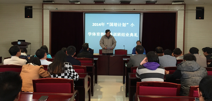 由新葡萄官网体育学院承担的为期三个月的2014“国培计划”小学体育教师培训顺利结束,1月9日下午,在办公楼举行了结业典礼。体育学院党总支书记韦继康、院长赵平,“国培计划”培训班的班主任和50名学员参加会议。