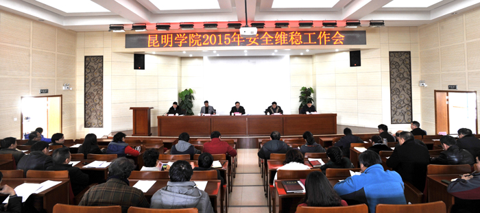 为总结2014年度学校安全维稳工作,布置2015年安全维稳工作,1月21日下午,学校在办公楼D区报告厅召开2015年安全维稳工作会。校长蒋永文,党委副书记孙勇,副校长李翔、郭华,学校各单位负责人、各教学院系党政主要领导以及分管学生工作副书记、保卫处干部职工80余人参加会议,会议由保卫处处长方永昆主持。