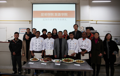1月23日下午,学校举行首批孟加拉学生烹饪培训班结业典礼。副校长李翔出席并为孟加拉学生颁发结业证书,国际交流合作处全体人员、旅游学院领导和相关教师参加。