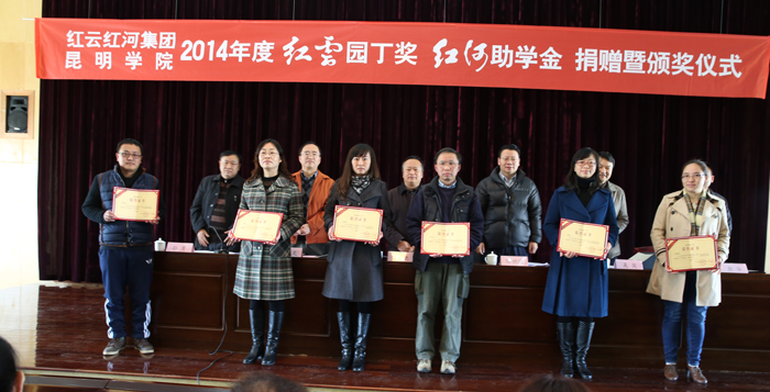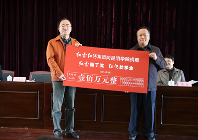 蒋校长指出,红云红河集团昆明卷烟厂勇于承担应尽的社会责任,始终把扶贫济困、支持文化教育、致力社会公益作为一项义不容辞的企业责任和使命,始终把助学助教、尊师重教放在企业社会责任的重要位置,在全省多所学校设立了奖助金,树立了良好的企业形象。自2010年红云红河集团秉承经济社会效益并重、助推高等教育发展的理念,在新葡萄官网设立“红云园丁奖”及“红河助学金”以来,连续5年奖助新葡萄官网在教书育人中取得突出成绩的教师,以及品学兼优、家庭经济困难学生1000余人。现在,“红云园丁奖”、“红河助学金”已成为广大师生竞相争报的校级重要奖项之一,极大地激发和调动了广大教师教书育人的积极性和创造性,鼓舞了同学们努力学习、攻坚克难、奋发向上、成长成才的青春热情。在教书育人、教学改革、教学管理等工作中做出突出贡献和优异成绩的教师和教学管理人员不断涌现,品学兼优的家庭经济困难学生获得资助,广大师生都把获得“红云园丁奖”和“红河助学金”作为对自己付出努力的肯定和荣誉,并把这种荣誉化作不竭动力,在各自的工作和学习中不断取得新成绩,有力地推动了学校教育、教学的长足发展。