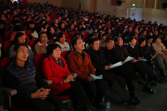 12月26日下午,新葡萄8883官网AMG2015新年师生团拜暨文艺汇演在学生会堂隆重举行。校长蒋永文,党委副书记孙勇、李媛芬,副校长李翔、刘海发、董建华等校领导和全体中层干部、各院系团总支书记、辅导员、学生代表共计1300余名师生欢聚一堂,共迎美好明天。