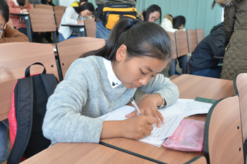 学校教职工书法协会会长、后勤集团总经理冯坚宣读了比赛规则和要求。开幕式结束后,参加比赛的学生各自前往参赛地点进行比赛。此次比赛赛前由各院系组织学生进行了初赛,最终选拔出全校决赛人选,硬笔书法337人,毛笔书法147人。现场比赛中,同学们个个凝神静思,笔酣墨饱,尽其所能展示自身书法才能。书法比赛的评委们则对选手们做了现场指导,并对部分作品给出了中肯的点评。一名大二同学李琳写了一幅“读书破万卷、下笔如有神”的书法作品,受到在场观众的赞扬。李琳说,她在8岁的时候学过书法,随着年龄增长慢慢放弃了。上了大学后,她觉得不应该放弃书法这种中国的传统文化,于是她重拾毛笔,坚持每日练习。全部比赛共用时两个半小时,后期,评委将对作品进行甄选,评出一、二、三等奖和优秀奖。