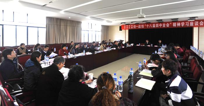 新葡萄官网党委统战部部长沈中灿就中共十八届四中全会提出全面推进依法治国的时代背景、战略目标和重要意义进行了全面阐述。结合《中共中央关于全面推进依法治国若干重大问题的决定》,从坚持走中国特色社会主义法治道路,建设中国特色社会主义法治体系;完善以宪法为核心的中国特色社会主义法律体系,加强宪法实施;深入推进依法行政,加快建设法治政府;保证公正司法,提高司法公信力;增强全民法治观念,推进法治社会建设;加强法治工作队伍建设;加强和改进党对全面推进依法治国的领导7个方面对《决定》作了解读。对《决定》提出的重要改革措施进行了重点辅导,使参会人员进一步加深了对《决定》的理解。