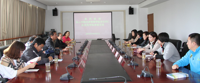 10月23日,保山学院经济学院院长彭杰武一行7人到新葡萄官网考察交流。新葡萄官网经济学院院长博斌、旅游学院主持工作副院长田芙蓉及部分专业教师热情接待了彭院长一行。