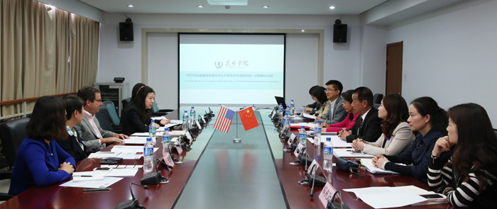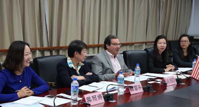 李翔副校长、国际交流合作处副处长陈静、旅游学院党总支书记张士芬、副院长田芙蓉、副书记杨光明等相关人员接待了代表团成员。李副校长代表学校欢迎代表团来访,并向来宾介绍了新葡萄8883官网AMG办学情况;田芙蓉介绍了旅游学院办学特色;来宾代表介绍了万豪国际集团及圣地亚哥州立大学情况。
