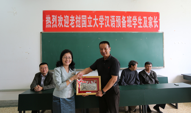 李翔副校长在会上介绍了昆明市和新葡萄8883官网AMG的基本情况,勉励留学生刻苦学习汉语,预祝大家顺利通过HSK考试并进入专业学习。Keomanivong PHIMMASENE女士也代表老挝国立大学对老挝同学提出殷切期望,对各国同学提出良好祝愿。会上,中老双方老师在亲切友好的氛围中互赠了礼物。