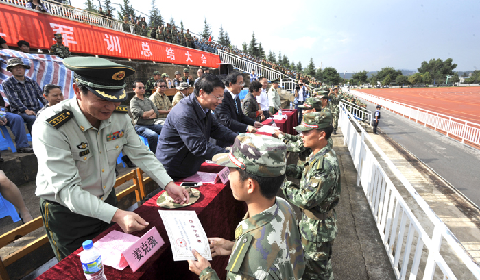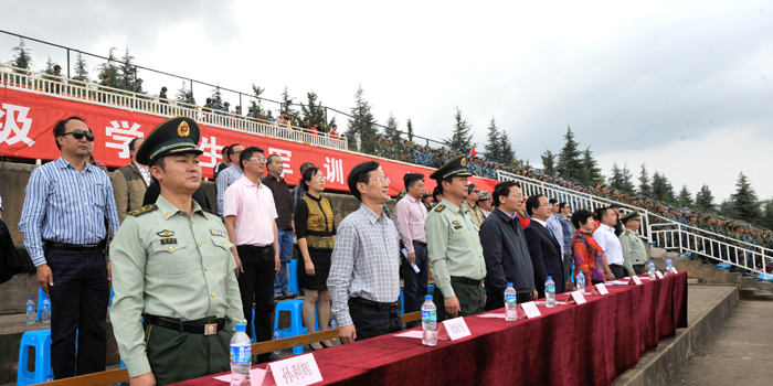 9月19日下午,新葡萄官网2014级学生军训总结大会在田径运动场隆重举行。学校党委书记陈世波,校长蒋永文,党委副书记、纪委书记李媛芬,副校长李翔、郭华、刘海发,武警边防部队士官学校副校长姜克强、继续教育处处长孙利辉、军需卫生系主任李海昌,新葡萄官网国防教育委员会成员单位领导、各院系党总支副书记、带队辅导员,2014级4790余名参训学生参加了总结大会。大会由副校长李翔主持。