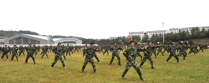 总结大会上,蒋永文校长首先检阅了2014级学生军训团受阅方队。随后,学生军训团的分列式、队列操、擒敌拳、战伤救护、消防演练等科目逐一登场表演。同学们的热情与精彩汇报,突显出同学们的顽强斗志,同学们精彩纷呈的表演和教官们的有序指挥赢得了学校领导、部队首长以及现场同学们的阵阵掌声和好评。