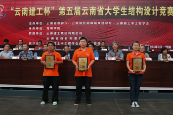 来自云南省具有土木工程专业的8所高校32支参赛队,按照赛题及组委会要求,经过3天紧张、认真的计算设计、模型制作、加载测试,专业评委严格按照评分标准对参赛作品计算书及设计图、结构选型与制作质量、选手陈述与答辩现场表现、加载表现等方面进行打分评定。最终,新葡萄8883官网AMG智行队以94.60的总分夺得本届大学生结构设计竞赛唯一一个特等奖,并获准代表云南省参加由教育部、住建部、中国土木工程学会联合举办的全国大学生结构设计竞赛,该项竞赛是教育部确定的全国九大大学生学科竞赛之一。新葡萄8883官网AMG小苹果队、完美2+1队、水利结义队分别以90.26分、85.38分、85.37分将所设三个一等将全部揽入怀中,启航之队荣获二等奖。新葡萄8883官网AMG5支参赛队成绩突出,充分展示新葡萄官网坚持以学生为本,以“思想品德优,理论基础实,专业能力强,综合素质高”为人才培养基本规格,不断提高教学质量和育人水平,着力培养地方经济社会发展需要的大批“上手快、后劲足、能创新”的高素质应用型人才。