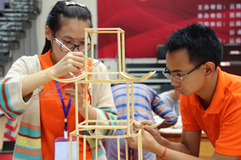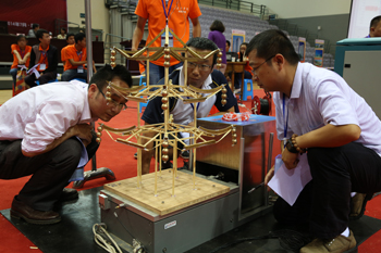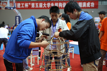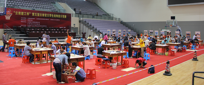 从竞赛组委会获悉,云南省大学生结构设计竞赛每年举办一次,是培养大学生创新意识、合作精神和工程实践能力的学科性竞赛。为高等学校开展创新教育和实践教学改革、加强高校与企业之间联系、推动学科创新活动起到积极示范作用。参赛选手按照赛题,在统一材料、统一工具,规定的时间内完成模型设计制作,专家评委对模型称重、配重、加载,对模型设计合理美观、用材少而重量轻、抗震强等要素综合评定选手成绩。本次竞赛确定的模型形式为三重檐攒尖顶仿古楼阁,竞赛模型采用竹质材料制作。该类古建的一个现存实例为明代所建的西安钟楼,基于当前全球已进入巨震期这一工程背景,本次竞赛引入模拟地震作用作为模型的测试条件,这对于众多现存同类古建的抗震修缮与补强具有现实的科学价值和工程意义。