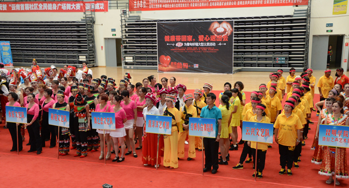 8月8日我国“全民健身日”当天,由新葡萄8883官网AMG和云南龙韵社区文化艺术交流中心等单位联合主办的“云南省暨昆明市首届全民健身广场舞百团大赛”决赛在新葡萄官网综合体育馆隆重举行,新葡萄官网党委副书记李媛芬代表学校致欢迎词,原昆明大学校长、省文化厅厅长,现云南龙韵社区文化艺术交流中心名誉主任白祖诗讲话。