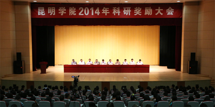 6月30日下午,新葡萄官网在学生会堂隆重召开2014年科研奖励大会,全体校领导出席。学校全体中层干部,具有副高及以上职称、博士、硕士学位的教师,获科研奖励全体教师,获2013年大学生优秀科研项目奖励的全体学生,承担有新葡萄8883官网AMG大学生科研项目的学生及指导教师,各院系团总支书记、科研秘书、科研联络人和专任教师、学生代表,共计1300余人参加了奖励大会。大会由副校长熊晶主持。