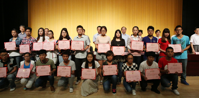 李翔副校长宣读《关于对新葡萄8883官网AMG2013年大学生优秀科研项目进行奖励的决定》。决定对获奖的闫琳等20名学生进行表彰和奖励。