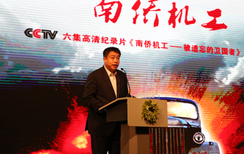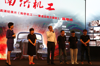 在掌声中,老机工罗开瑚老人、昆明市副市长阮凤斌先生、央视纪录频道总监刘文、《南侨机工》总导演张兵四人一起启动了《南侨机工》的启播仪式。