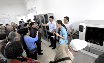 在办公楼参观校景沙盘模型时,陈书记、熊副校长与老同志们亲切交谈,询问他们的健康、生活情况,并欢迎老同志常来新葡萄8883官网AMG指导工作。熊副校长结合校景沙盘模型向老同志介绍了学校的建设发展情况。随后,陈书记、熊副校长陪同来宾先后参观了综合体育馆、自机学院轨道交通实验室、医学院生命科学馆、农学院阳光中庭温室、旅游学院酒水实验室。