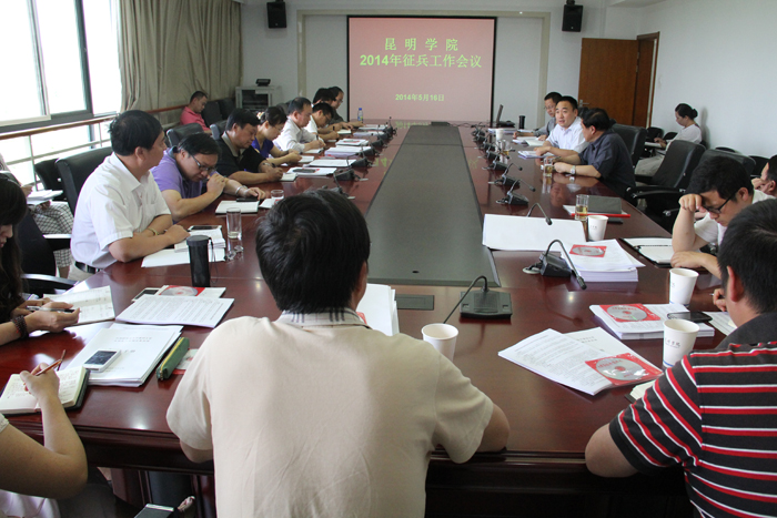 会上,郭华副校长首先对新葡萄官网2013年征兵工作的总体情况进行了通报,对去年征兵工作取得的成绩给予了肯定。接着传达了5月14日上午召开的2014年度全国大学生征兵工作网络视频会议及云南省大学生征兵工作会议精神。指出依法做好征兵工作,是加强部队建设、巩固国防的一项重要任务,是全社会的共同责任,学校各单位要充分认识做好大学生应征入伍工作的重要意义,要严格按照中央和省里的要求,按照今年征兵工作的各时间节点,做好大学生应征入伍的宣传动员、咨询服务、网上报名等各项工作。