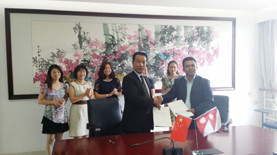 5月19日下午,尼泊尔国际快速有限公司总裁Milan Gyawali 先生及其助理Prem Raj Dahal先生再次访问新葡萄官网并与新葡萄官网签订合作协议,副校长李翔出席签约仪式,国际交流合作处处长王文君、旅游学院副院长田芙蓉及有关人员参加,双方就合作项目的具体事宜进行了深入商谈。